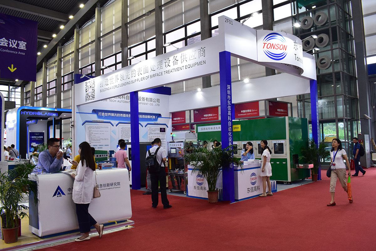 這就是我們的展位,展位号是2展館,2F01,此次展會我們主要展出了我們公司最新的幾款産品,環保超聲波清洗線,幹式除塵設備,真空等離子清洗機,還有大氣等離子清洗機,這幾款産品都是環保型的産品,對環境保護貢獻出我們的一份小小的力量。